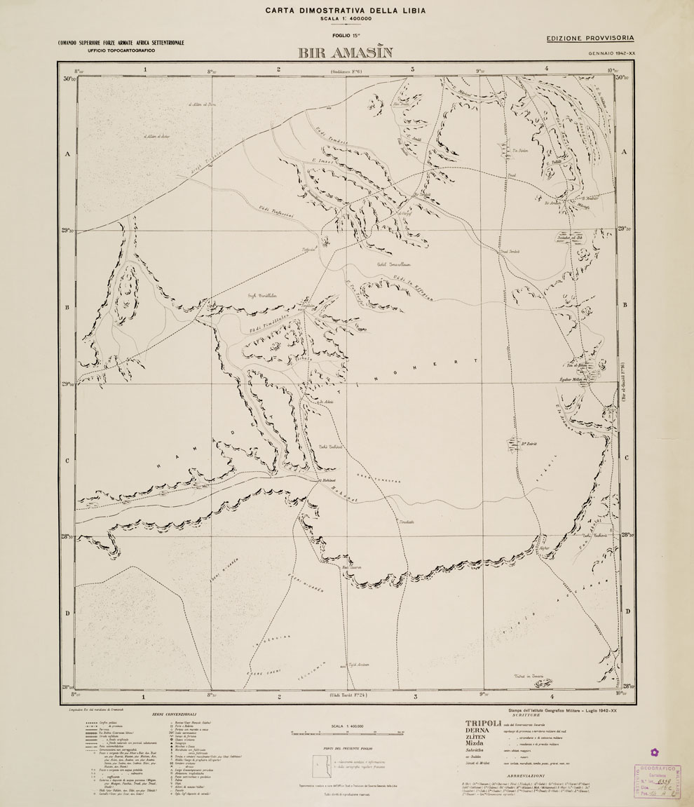 CARTA DIMOSTRATIVA DELLA LIBIA - Foglio 15 BIR AMASIM GENNAIO 1942 XX