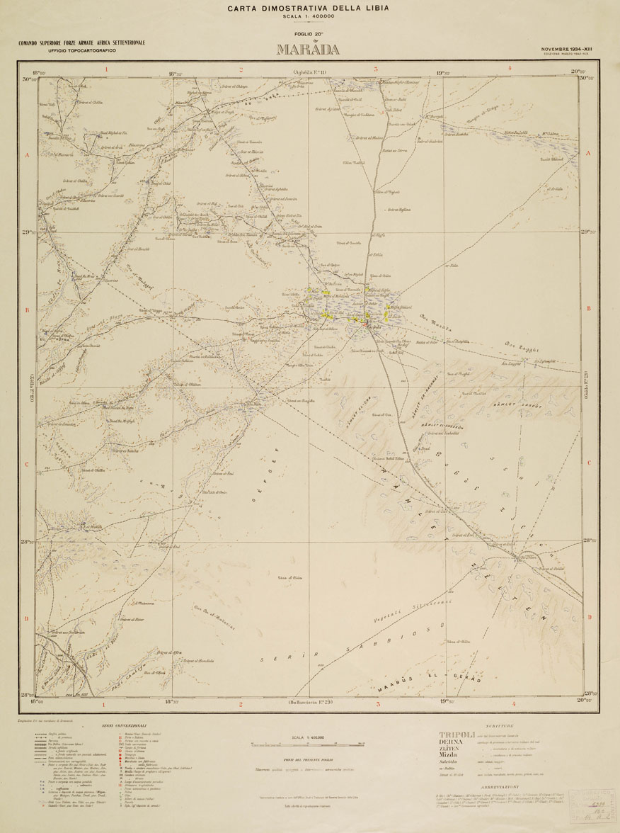 CARTA DIMOSTRATIVA DELLA LIBIA - Foglio 20 MARADA NOVEMBRE 1934 XIII