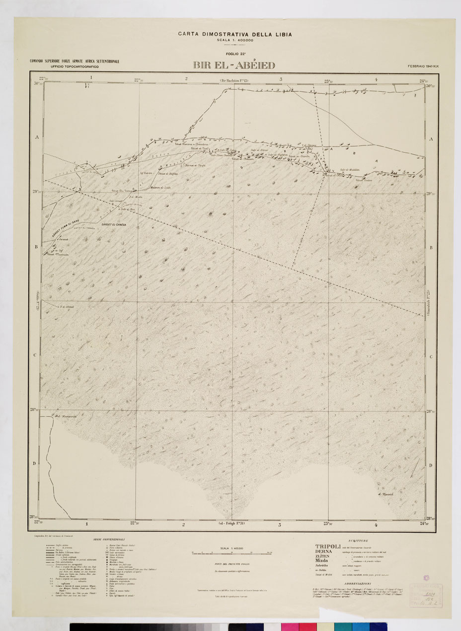 CARTA DIMOSTRATIVA DELLA LIBIA - Foglio 22 BIR EL - ABEIED FEBBRAIO 1941 XIX