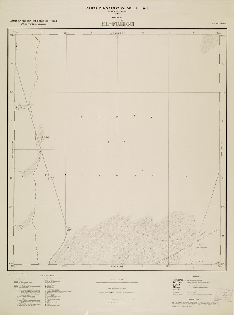 CARTA DIMOSTRATIVA DELLA LIBIA - Foglio 31 EL - FREIGH GIUGNO 1941 XIX