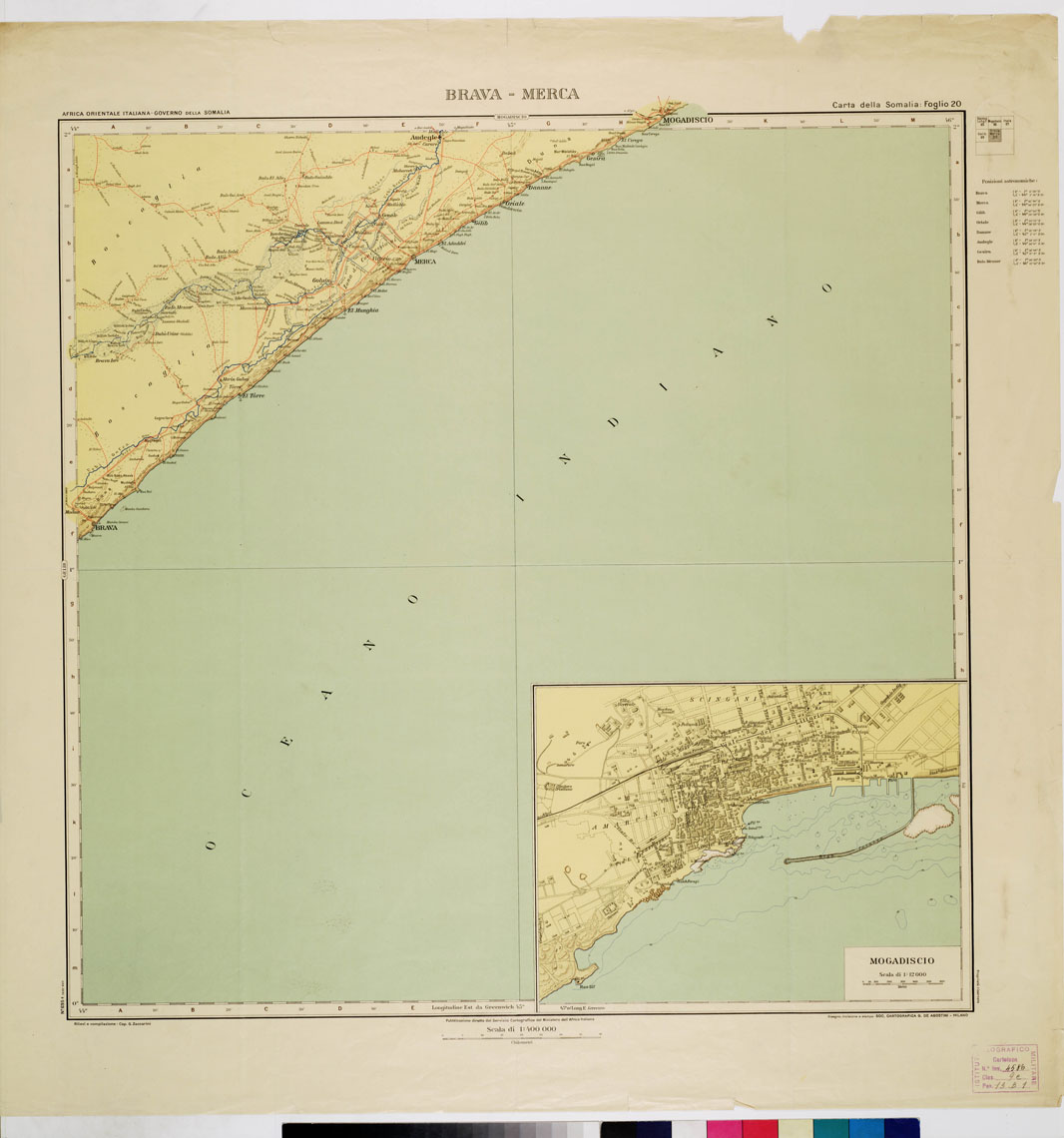 CARTA DELLA SOMALIA - Foglio 20 BRAVA MERCA
