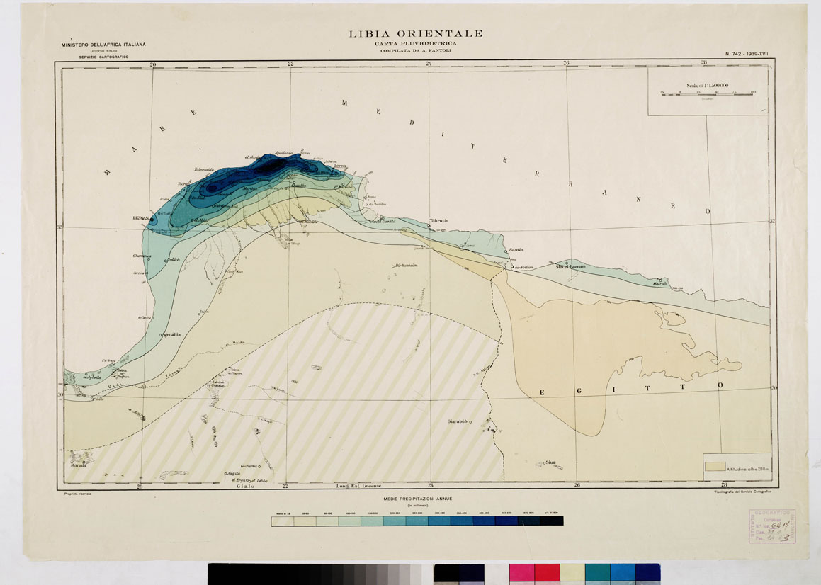LIBIA ORIENTALE - CARTA PLUVIOMETRICA COMPILATA DA A. FANTOLI - LIBIA ORIENTALE