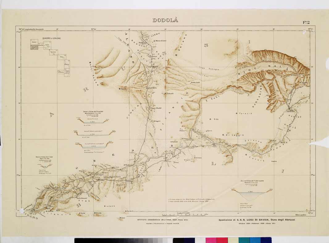 CARTA ITINERARIA DELLA SPEDIZIONE DI S.A.R. LUIGI DI SAVOIA DUCA DEGLI ABRUZZI PER L'ESPLORAZIONE DELLO UABI-UEBI SCEBELI 1928-1929 - Foglio 2 DODOLA