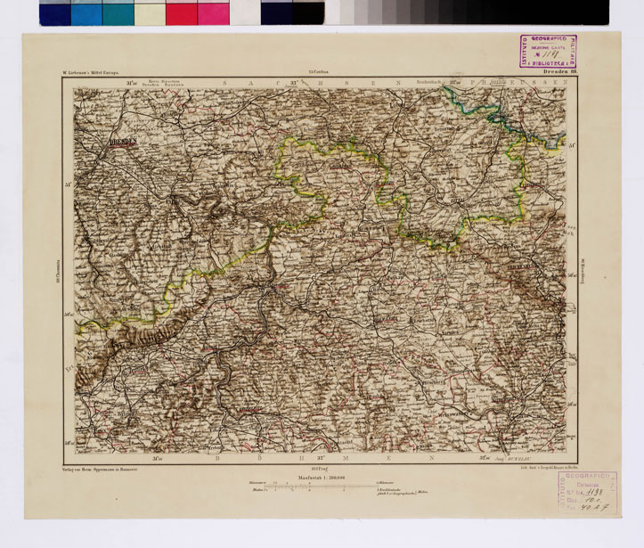 "Rappresentazione orografica. Grafia in lingua tedesca. Edizione eluogo di edizione Hannover. Autore: Liebewnow."
