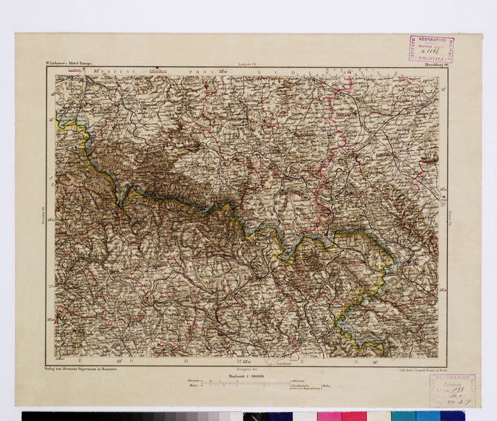 "Rappresentazione orografica. Grafia in lingua tedesca. Edizione eluogo di edizione Hannover. Autore: Liebewnow."