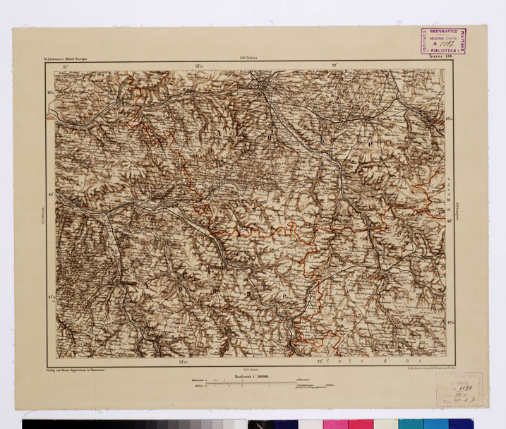 "Rappresentazione orografica. Grafia in lingua tedesca. Edizione eluogo di edizione Hannover. Autore: Liebewnow."