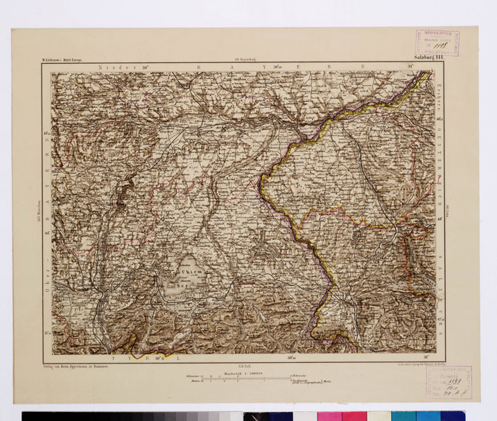 "Rappresentazione orografica. Grafia in lingua tedesca. Edizione eluogo di edizione Hannover. Autore: Liebewnow."