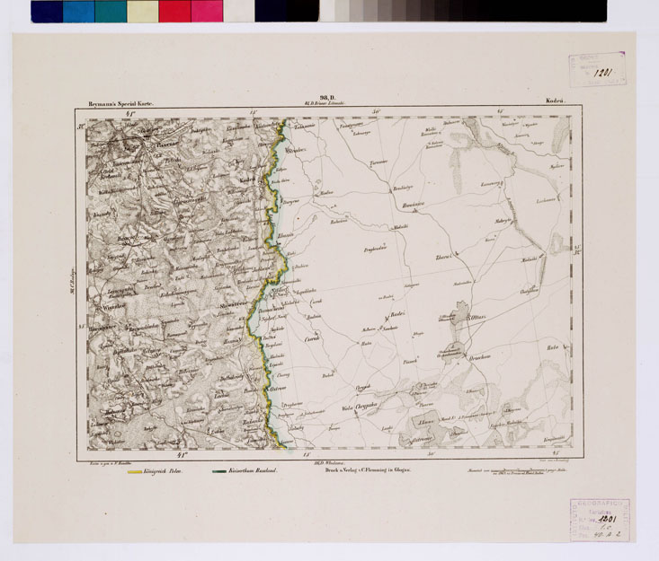 "Autore Reymann. Titolo in nero colorata a mano. Rappresentazione orografica a tratteggio."