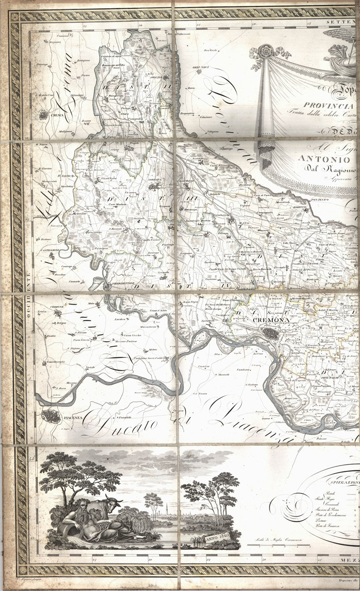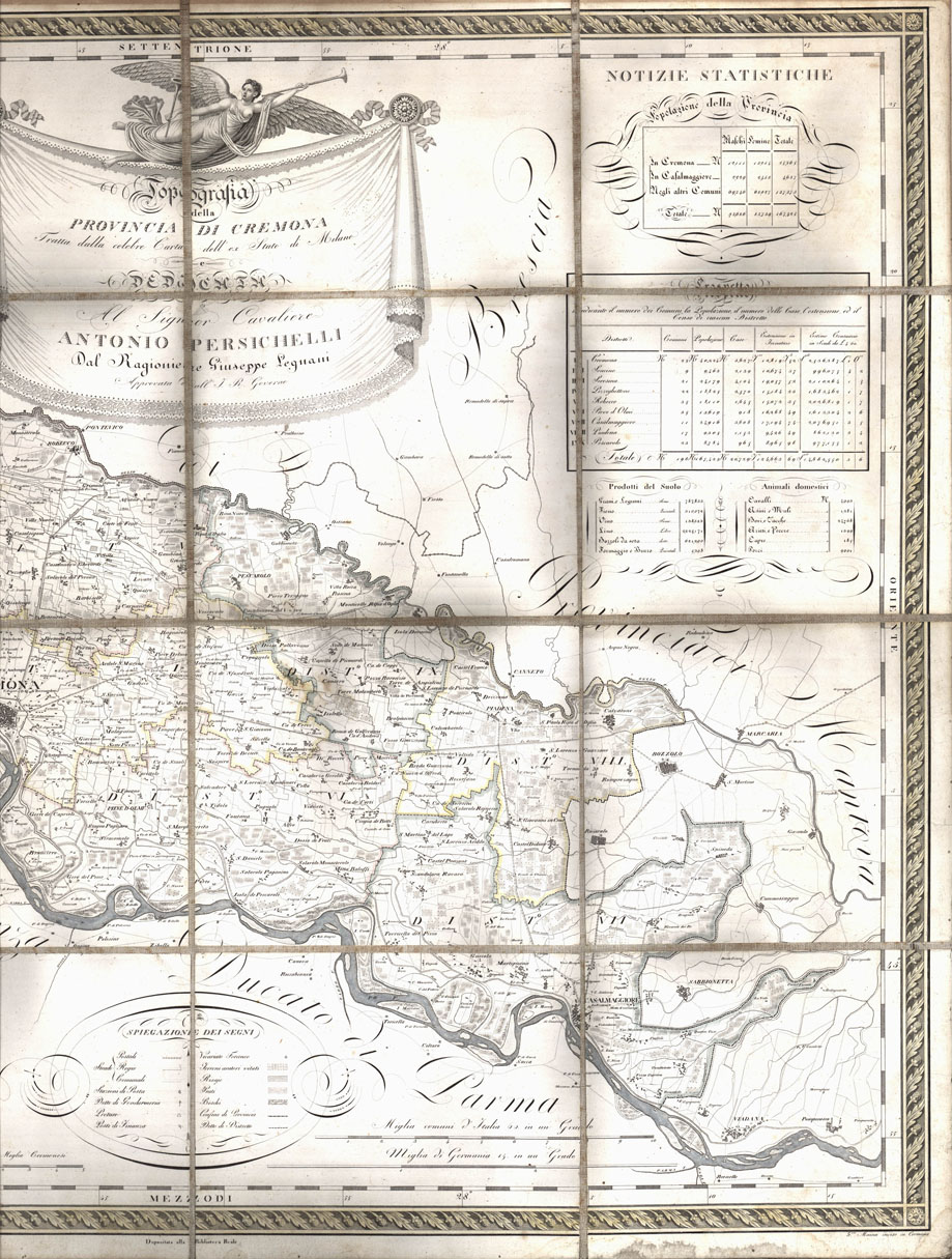 TOPOGRAFIA DELLA PROVINCIA DI CREMONA TRATTA DALLA CELEBRE DELL'EX STATO DI MILANO. DEDICATA AL SIG. CAVALIERE ANTONIO PERSICHELLI DAL RAGIONIERE GIUSEPPE LEGNANI. APPROVATA DALL'I.R. GOVERNO.