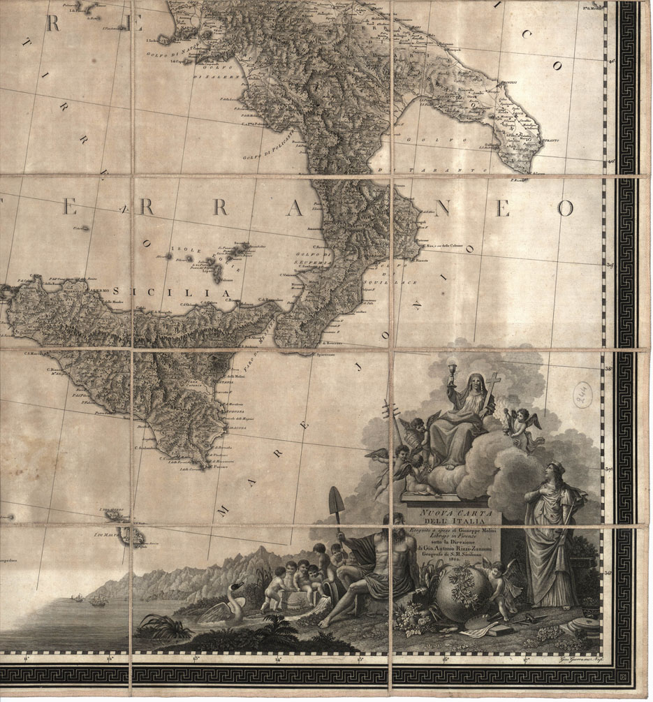NUOVA CARTA DELL'ITALIA ESEGUITA A SPESE DI GIUSEPPE MOLINI LIBRAIO IN FIRENZE, SOTTO LA DIREZIONE DI GIO. ANTONIO RIZZI-ZANNONI, GEOGRAFO DI S. M. SICILIANA.
