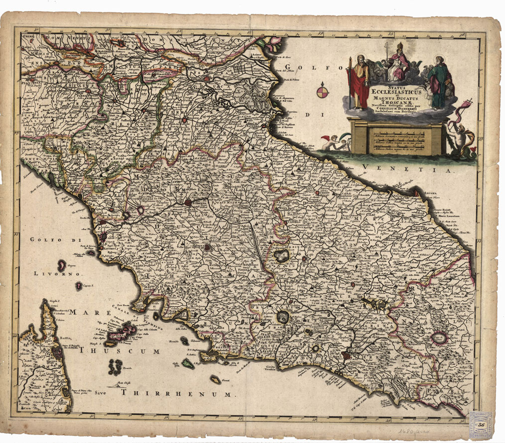 STATUS ECCLESIASTICUS ET MAGNUS DUCATUS THOSCANAE NOVISSIMA DESCRIPTIO PER CORNELIUM DANCKERTS AMSTELODAMI CUM PRIVILEGIO - Stato Ecclesiastico e Granducato di Toscana