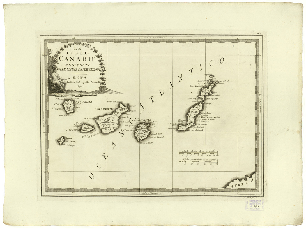 "...DELINEATE SULLE ULTIME OSSERVAZIONI. ROMA PRESSO LA CALCOGRAFIA CAMERALE 1798. "NUOVO ATLANTE GEOGRAFICO UNIVERSALE IN TRE TOMI", pubblicato in Roma presso la Calcografia Camerale, opera diretta per l'incisione da Padre G. M. Cassini. Il tomo I è dell'anno 1792, consta di carte 55 precedute da bella allegoria ideata da Tofanelli, incisa da Alessandro Mochetti. Il tomo II è dell'anno 1797, consta di carte 70, precedute da altra allegoria ideata e incisa da Demetrio Dragon. Il tomo III è dell'anno 1801, consta di 57 carte precedute da allegoria di Demetrio Dragon (come nel tomo II). L'opera grandiosa è stata favorita da Papa Pio VI. Redattore, specialmente del tomo I, è il Canonico D. Pietro Bonaccorsi. Del documento fanno parte un testo ed i globi. Testo: "INTRODUZIONE GENERALE ALLO STUDIO DELLA GEOGRAFIA" compendiosa notizia di pagine 34 stampata a Roma nella Calcografia Camerale, divisa in cinque parti: (1792-1801). Parte 1) della Sfera e de' due Globi celeste e terrestre. Parte 2) de' termini generali della Geografia. Parte 3) dell'origine, progressi e stato attuale della medesima. Parte 4) del metodo tenuto per il presente Atlante. Parte 5) delle navigazioni degli antichi fino a noi, e delle scoperte onde per loro mezzo si è arricchita la geografia. Di quest'opera si posseggono due copie, una è mancante del titolo. "GLOBI DELINEATI DAL PADRE GIOVANNI MARIA CASSINI CHIERICO REGOLARE SOMASCO", costruiti per la Biblioteca dell' I.G.M. nell'anno 1928. Il materiale per formare i Globi è stato tracciato dal Cassini, che fu geografo, cartografo e intagliatore su rame. Al numero d'ordine 44 del catalogo è la descrizione del Testo: "INTRODUZIONE GENERALE ALLO STUDIO DELLA GEOGRAFIA" e del "NUOVO ATLANTE GEOGRAFICO UNIVERSALE IN TRE TOMI", editi fra gli anni 1792-1801, contenenti complessivamente 182 tavole artisticamente incise. Le tavole 7, 8, 9, 10, 15 e 17 del tomo I contengono i disegni per formare il GLOBO TERRESTRE. A costruire il GLOBO CELESTE sono servite le tavole 11, 12, 13, 14, 16 e 18 dello stesso tomo I. La periferia dei 12 spicchi è metri 1,06 in ambi i disegni altre caratteristiche comuni alle due sfere sono: linea equatoriale, tropici, eclittica, ampiezza degli spicchi all'equatore 30°. Il Globo terrestre è del 1843, ma prima di tale data esso subì delle varianti, concretate dopo accrescimenti per nuove scoperte geografiche e conseguenti rettifiche, nella attuale rappresentazione. I meridiani sono tracciati, come i paralleli, ogni 10°. Il meridiano iniziale, che passa per l'Isola del Ferro, l'equatore e l'eclittica, sono divisi in gradi. Il sostegno, o castello, è in legno tornito a quattro colonnine presenta sull'orizzonte incollata una carta colle indicazioni dei segni dello zodiaco, delle rose dei venti, e con la divisione di grado in grado. Una tabellina offre la lunghezza del grado del circolo massimo della Sfera terrestre in 14 diverse unità di misura. Il Globo celeste contiene le costellazioni, la via lattea, le stelle fino alla 6^ grandezza e le nebulose è calcolato per l'anno 1792 sui dati degli astronomi "Flamsteed e De la Caille". E' rivestito con spicchi come il Globo terrestre. Le due Sfere ruotano attorno un asse di acciaio che passa per i poli i sostegni sono eguali nei due Globi."
