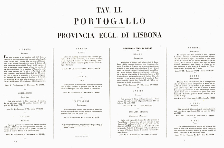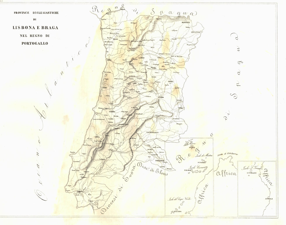 L'Atlante del Petri. - Parte II Tavola LI- PROVINCE ECCLESIASTICHE DI LISBONA E BRAGA NEL REGNO DI PORTOGALLO.