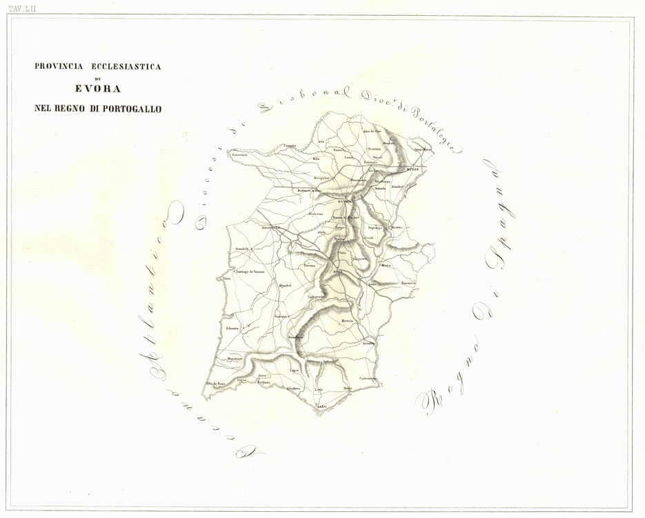 L'Atlante del Petri - Parte II Tavole LII - PROVINCIA ECCLESIASTICA DI EVORA NEL REGNO DI PORTOGALLO.