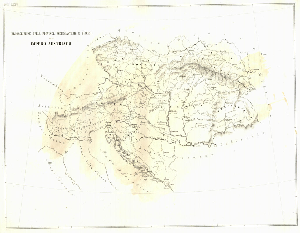 L'Atlante del Petri - Parte II Tavole LXIV -CIRCOSCRIZIONE DELLE PROVINCE ECCLESIASTICHE E DIOCESI NELL'IMPERO AUSTRIACO.