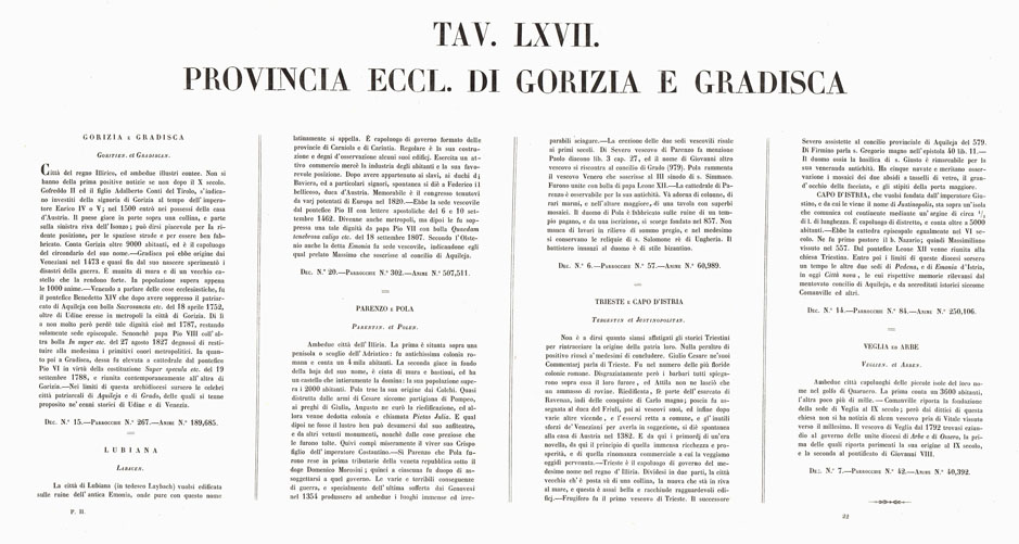 L'Atlante del Petri - Parte II Tavole LXVII - PROVINCIA ECCLESIASTICA DI GORIZIA NELL'IMPERO AUSTRIACO.