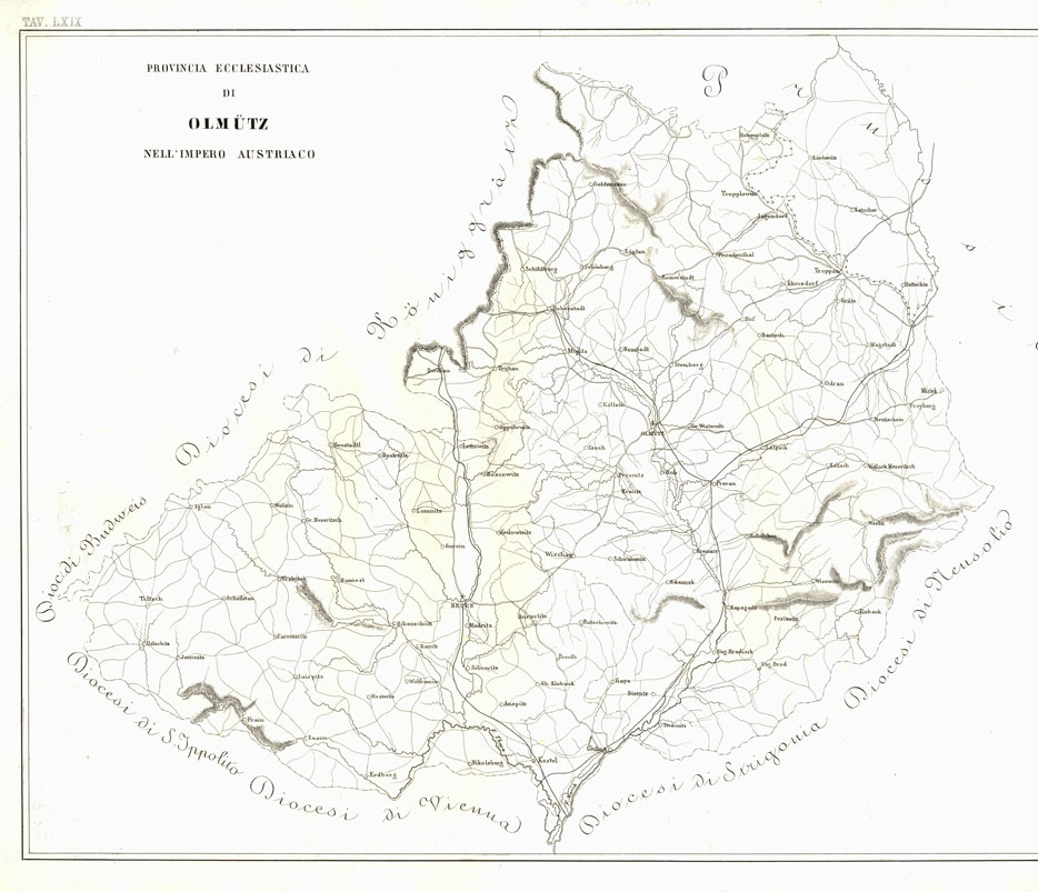 L'Atlante del Petri - Parte II Tavole LXIX - PROVINCIA ECCLESIASTICA DI OLMUTZ NELL'IMPERO AUSTRIACO.