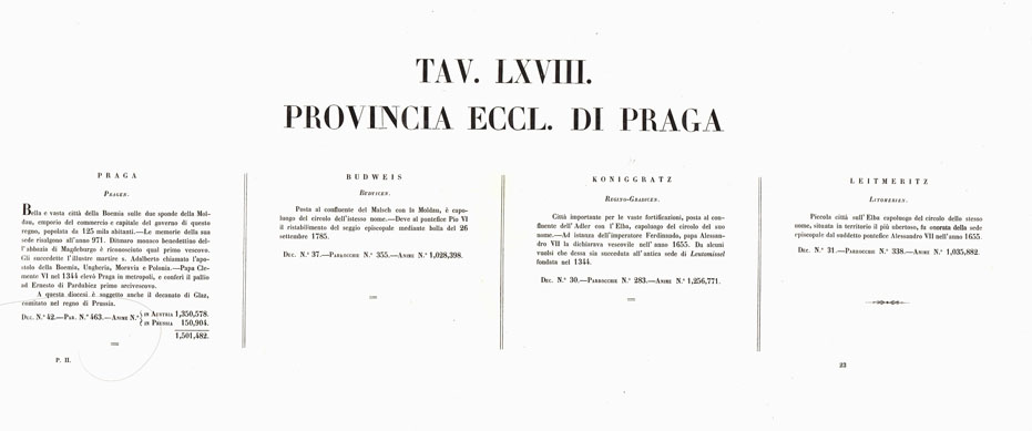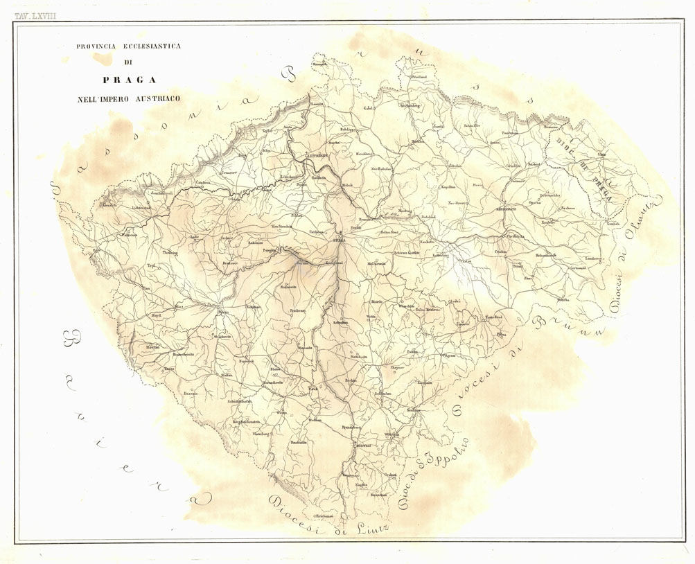 L'Atlante del Petri - Parte II Tavola LXVIII -PROVINCIA ECCLESIASTICA DI PRAGA NELL'IMPERO AUSTRIACO.