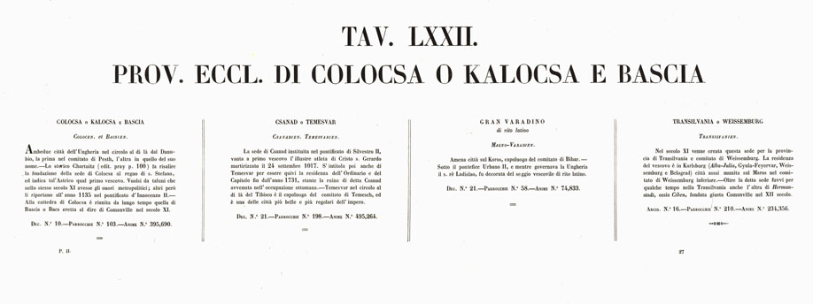 L'Atlante del Petri - Parte II Tavola LXXII - PROVINCIA ECCLESIASTICA DI KALOCSA IN UNGHERIA.