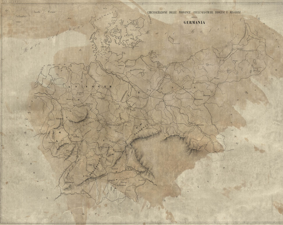 L'Atlante del Petri - Parte II Tavole LXXVI -CIRCOSCRIZIONE DELLE PROVINCE ECCLESIASTICHE DIOCESI E MISSIONI NELLA GERMANIA.
