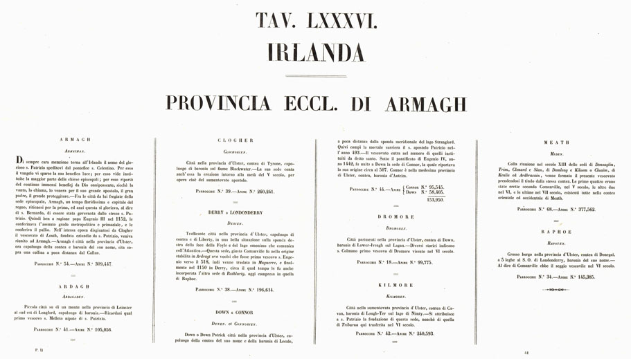 L'Atlante del Petri - Parte II Tavole LXXXVI - PROVINCIA ECCLESIASTICA DI ARMAGH NELL'IRLANDA