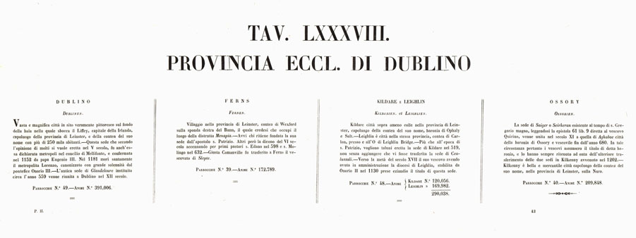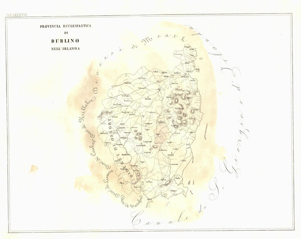 L'Atlante del Petri - Parte II Tavole LXXXVIII - PROVINCIA ECCLESIASTICA DI DUBLINO NELL'IRLANDA.