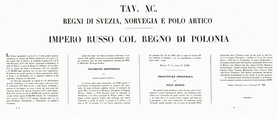 L'Atlante del Petri - Parte II Tavole XC - CIRCOSCRIZIONE DELLE PROVINCE ECCLESIASTICHE E DIOCESI NELL'IMPERO DI RUSSIA IN EUROPA VICARIATO APLICO DI SVEZIA NORVEGIA E PREFETTURA DEL POLO ARTICO.