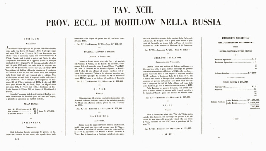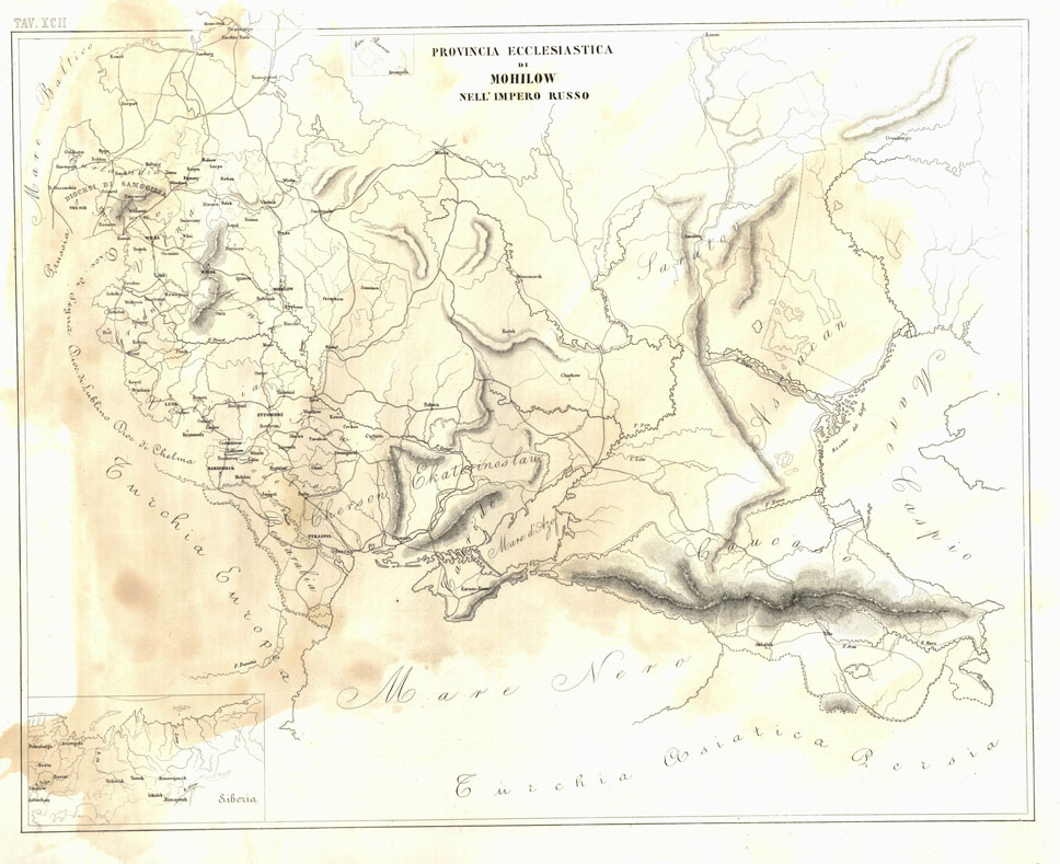 L'Atlante del Petri - Parte II Tavole XCII -PROVINCIA ECCLESIASTICA DI MOHILOW NELL'IMPERO RUSSO.
