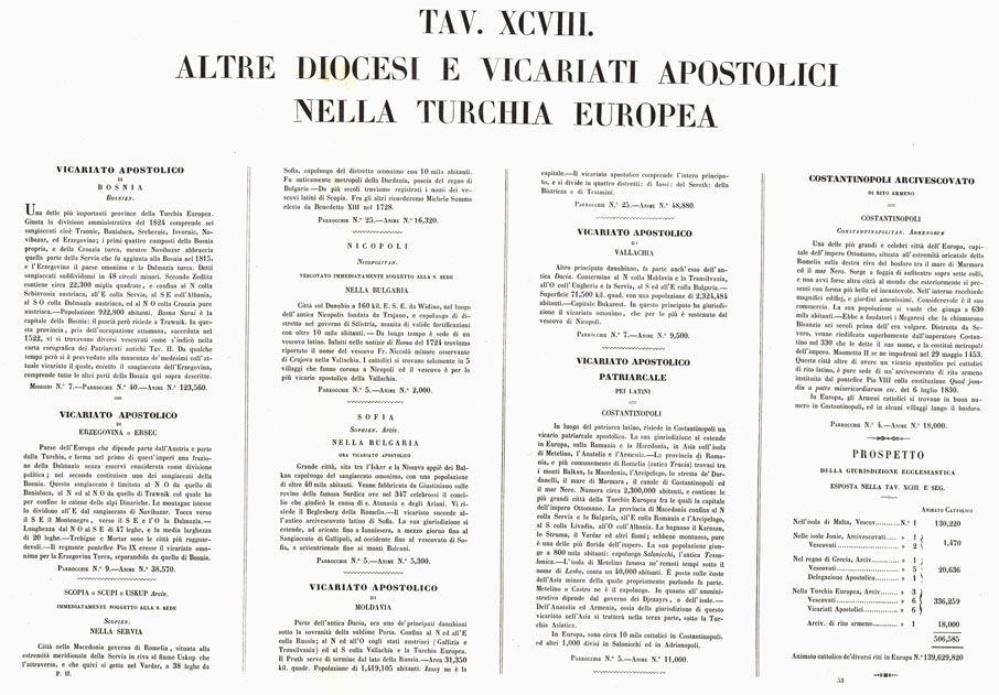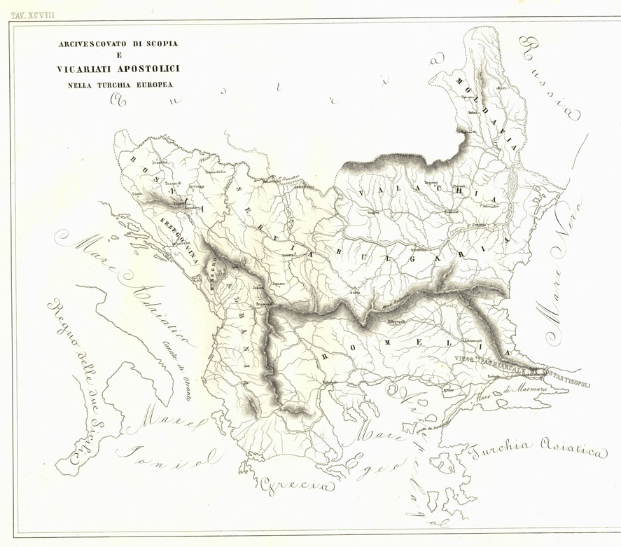 L'Atlante del Petri - Parte II Tavole XCVIII - ARCIVESCOVATO DI SCOPIA E VICARIATI APOSTOLICI NELLA TURCHIA EUROPEA