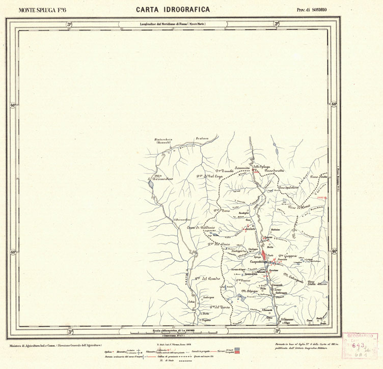 CARTA IDROGRAFICA DEL REGNO D'ITALIA - Foglio 6 - Monte Spluga