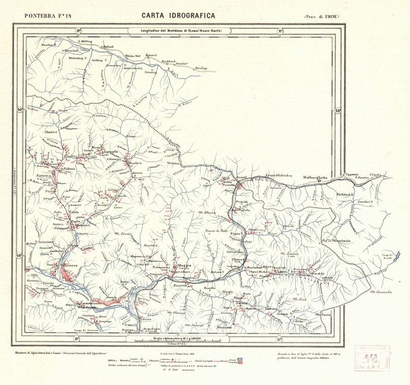 CARTA IDROGRAFICA DEL REGNO D'ITALIA - Foglio 14 - Pontebba