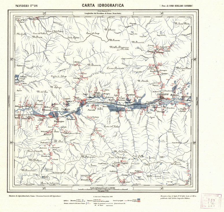 CARTA IDROGRAFICA DEL REGNO D'ITALIA - Foglio 18 - Sondrio