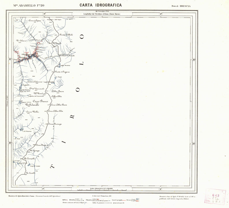 CARTA IDROGRAFICA DEL REGNO D'ITALIA - Foglio 20 - M.te Adamello