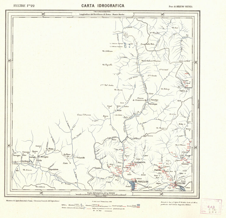 CARTA IDROGRAFICA DEL REGNO D'ITALIA - Foglio 22 - Feltre