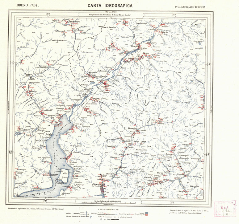 CARTA IDROGRAFICA DEL REGNO D'ITALIA - Foglio 34 - Breno