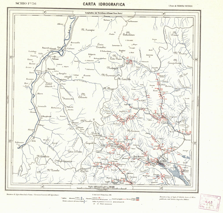 CARTA IDROGRAFICA DEL REGNO D'ITALIA - Foglio 36 - Schio
