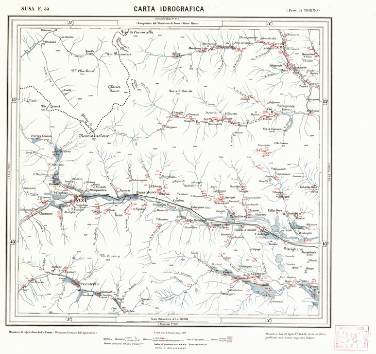 CARTA IDROGRAFICA DEL REGNO D'ITALIA - Foglio 55 - Susa