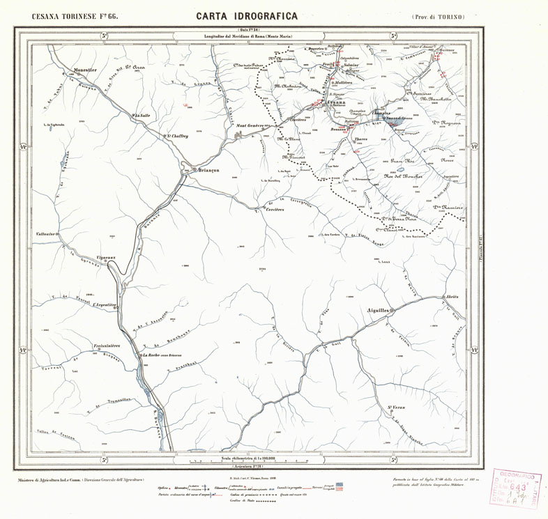 CARTA IDROGRAFICA DEL REGNO D'ITALIA - Foglio 66 - Cesana Torinese