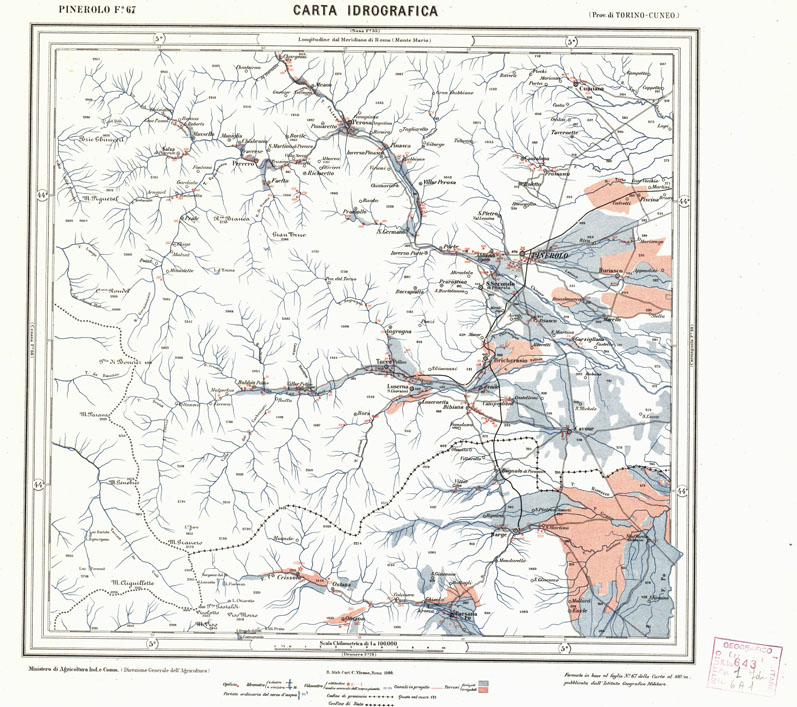 CARTA IDROGRAFICA DEL REGNO D'ITALIA - Foglio 67 - Pinerolo