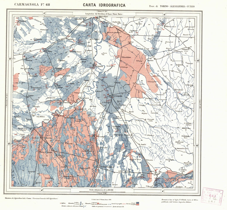 CARTA IDROGRAFICA DEL REGNO D'ITALIA - Foglio 68 - Carmagnola