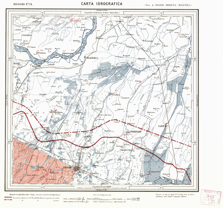 CARTA IDROGRAFICA DEL REGNO D'ITALIA - Foglio 74 - Reggio