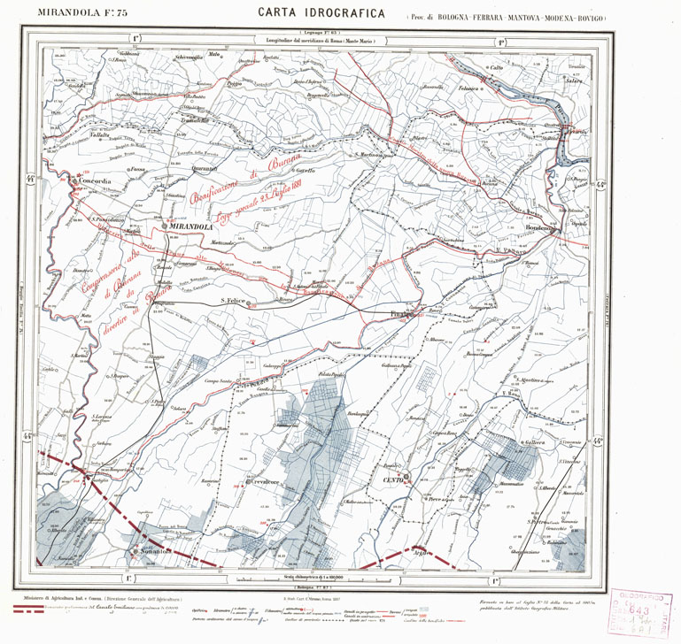 CARTA IDROGRAFICA DEL REGNO D'ITALIA - Foglio 75 - Mirandola