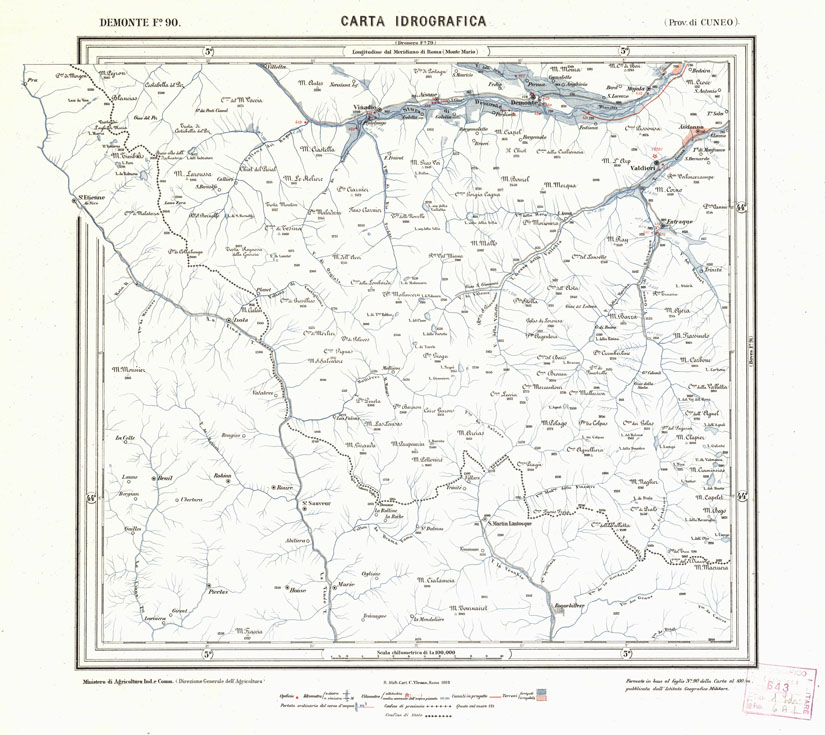CARTA IDROGRAFICA DEL REGNO D'ITALIA - Foglio 90 - Demonte