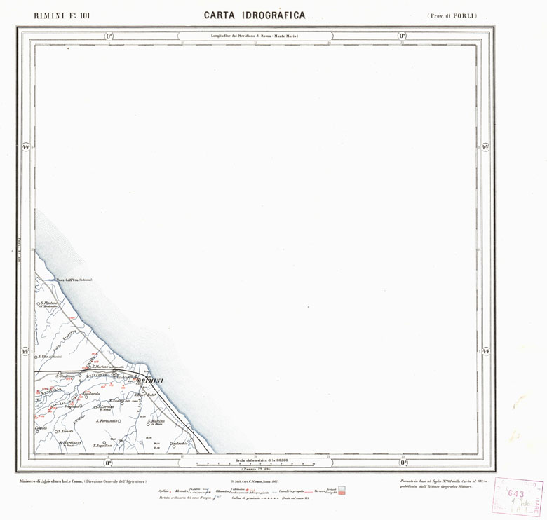 CARTA IDROGRAFICA DEL REGNO D'ITALIA - Foglio 101 - Rimini