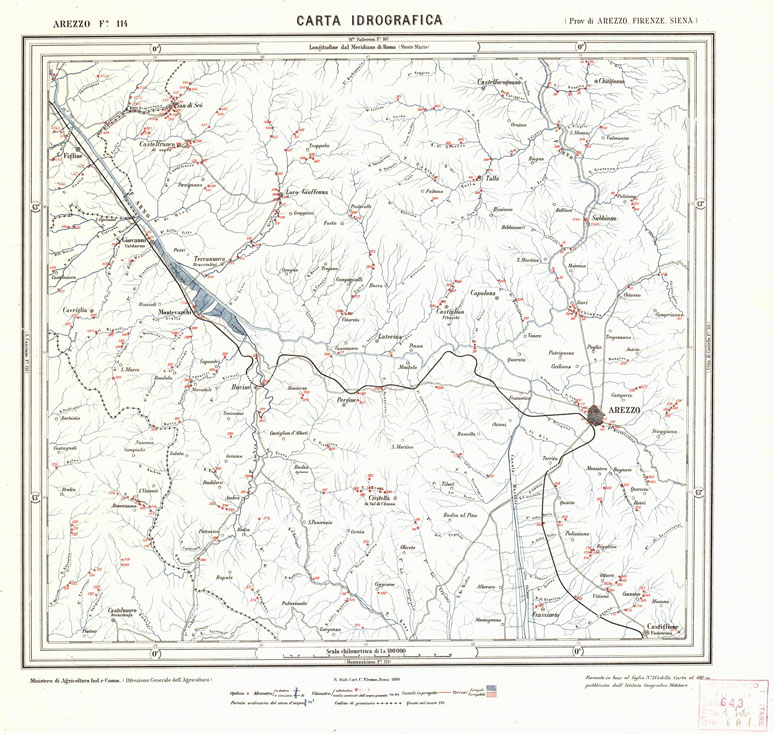 CARTA IDROGRAFICA DEL REGNO D'ITALIA - Foglio 114 - Arezzo