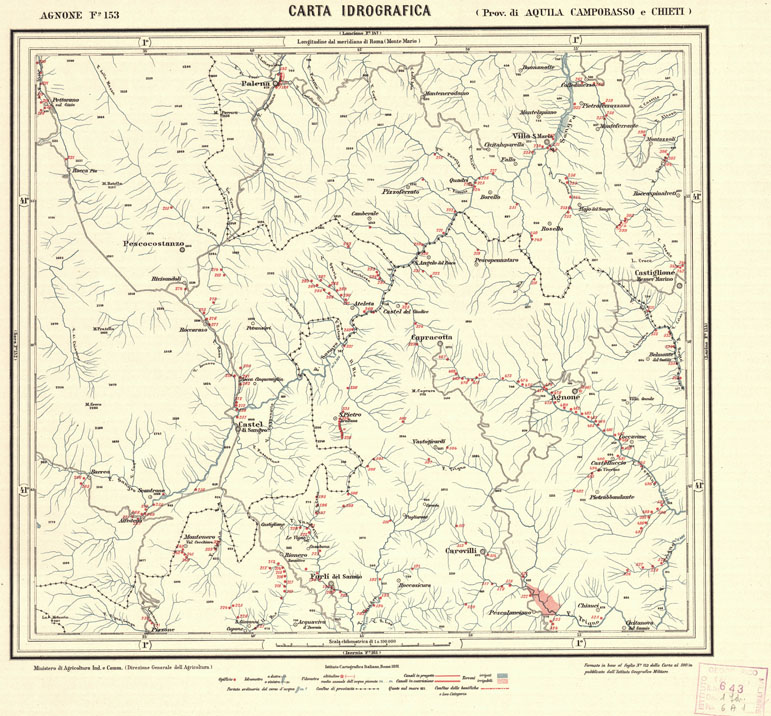 CARTA IDROGRAFICA DEL REGNO D'ITALIA - Foglio 153 - Agnone