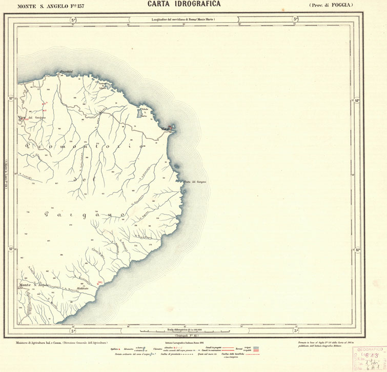 CARTA IDROGRAFICA DEL REGNO D'ITALIA - Foglio 157 - Monte S. Angelo