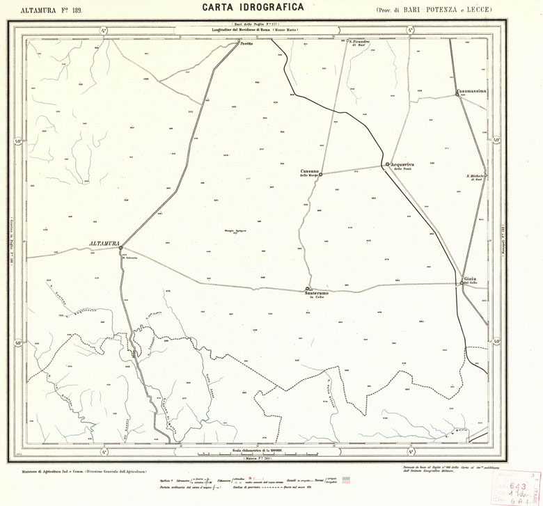 CARTA IDROGRAFICA DEL REGNO D'ITALIA - Foglio 189 - Altamura