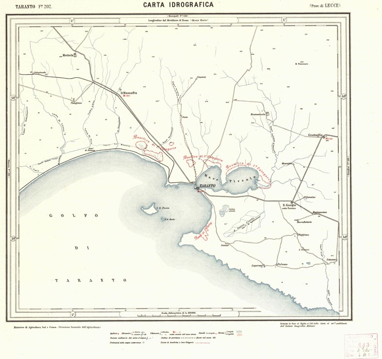 CARTA IDROGRAFICA DEL REGNO D'ITALIA - Foglio 202 - Taranto