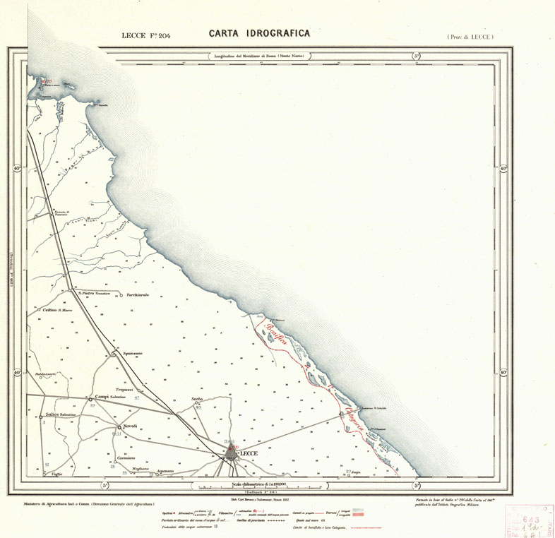 CARTA IDROGRAFICA DEL REGNO D'ITALIA - Foglio 204 - Lecce